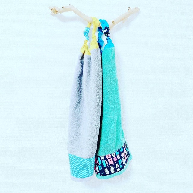 お家や園でお使いいただけるタオルエプロン2枚組です。 首元のゴムは軽く結んでおりますので、 お子様のサイズに合わせお使いください。 ゴムをしっかり結んで中に入れていただくと完成です。 ☆サイズ☆ 長さ 約42センチ 幅 約34センチ 首周り 約40センチ(ゴムで調整していただけます) ひとつひとつ丁寧にお作りしますが、 既製品レベルの完璧な商品をお求めの方はご遠慮ください。