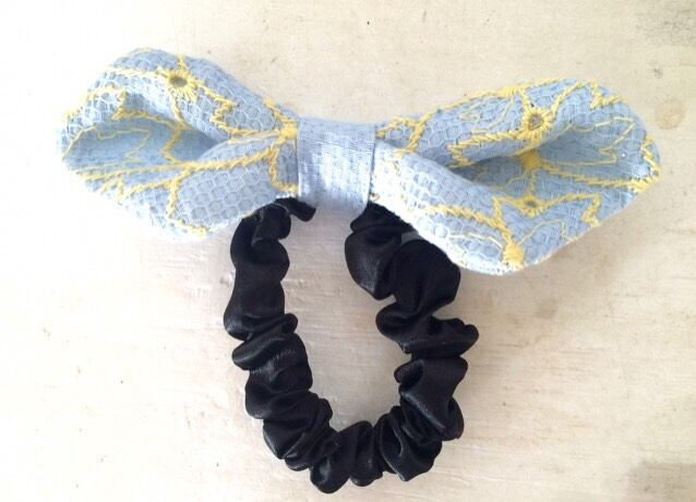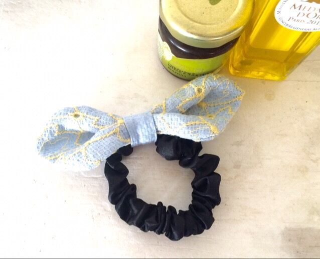 爽やかなレースのリボンタイプのヘアゴム☆ 黄色の刺繍がアクセントになってます。