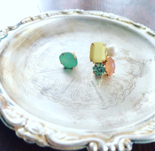 様々なタイプのビジューとコットンパールをあしらったパステルトーンのピアス