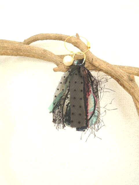 レースやリボン、いろいろな素材を組み合わせたタッセルをキーリングにしました。