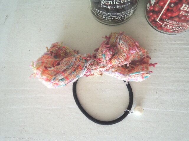 きゅっとねじってリボンにしたタイプのヘアゴム。