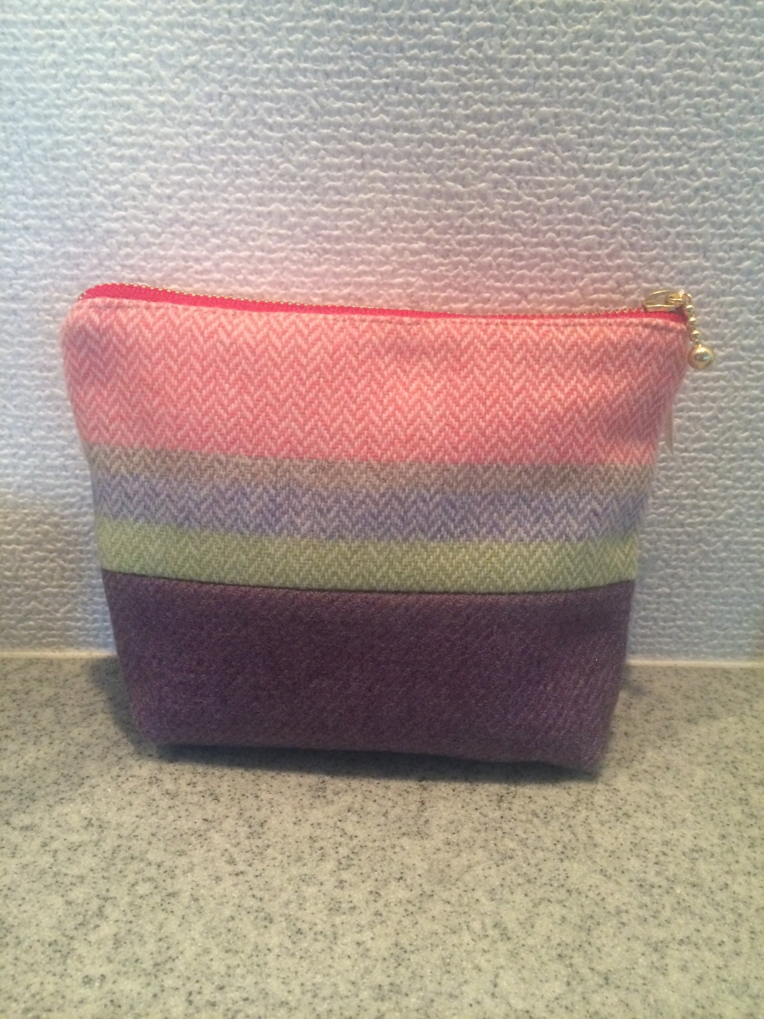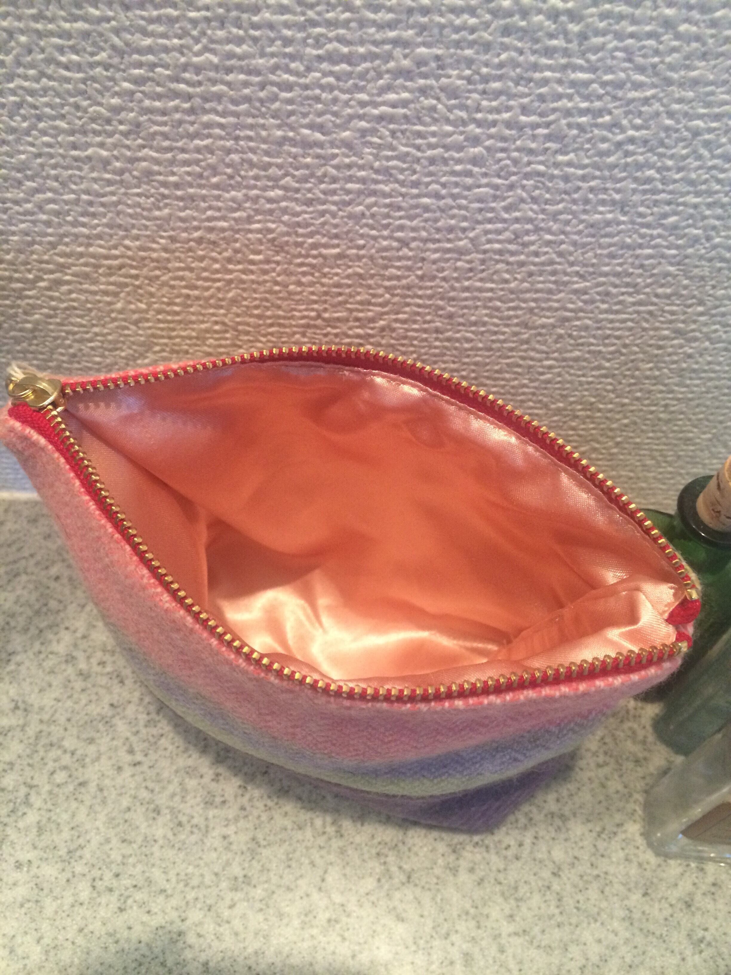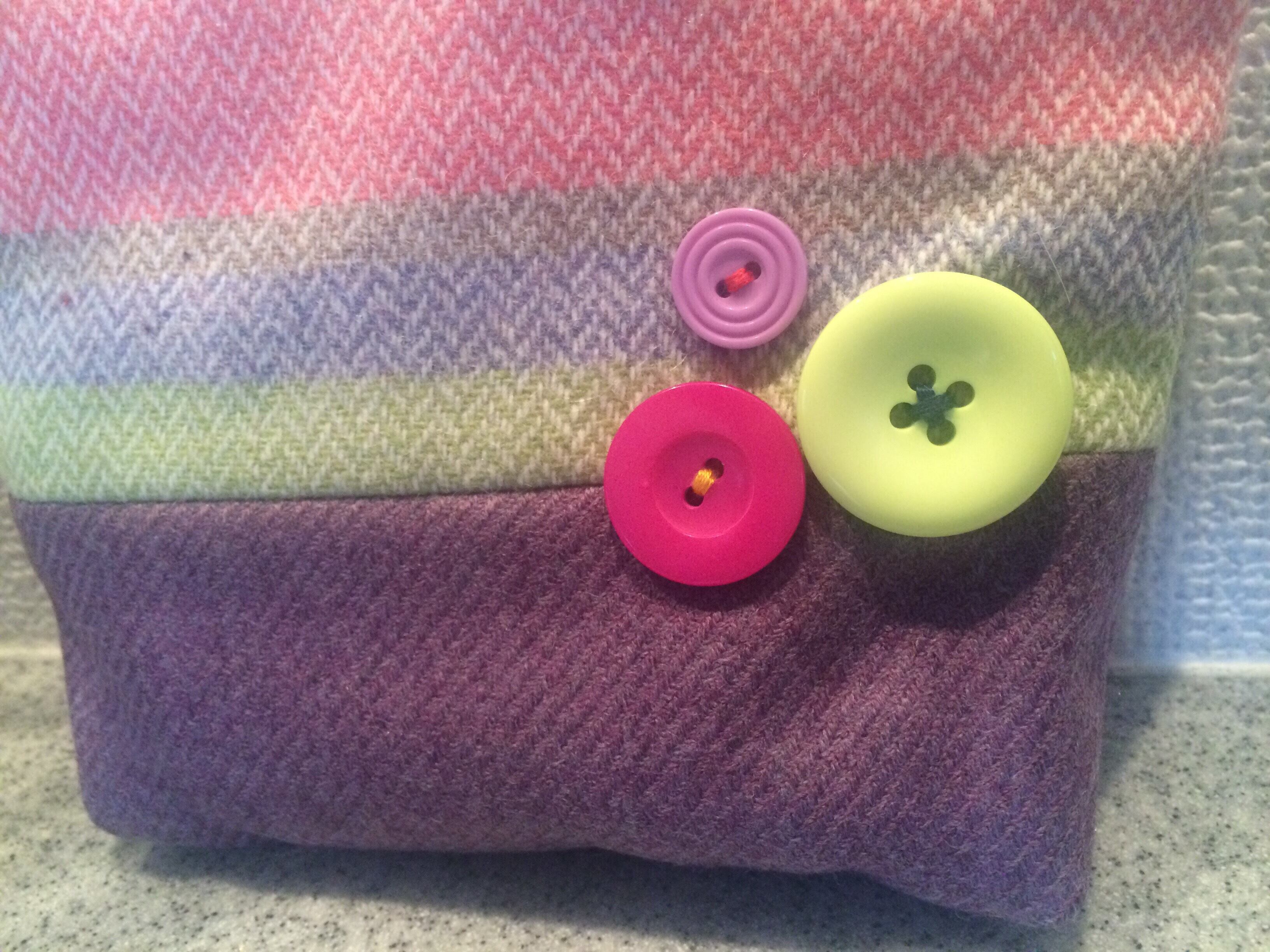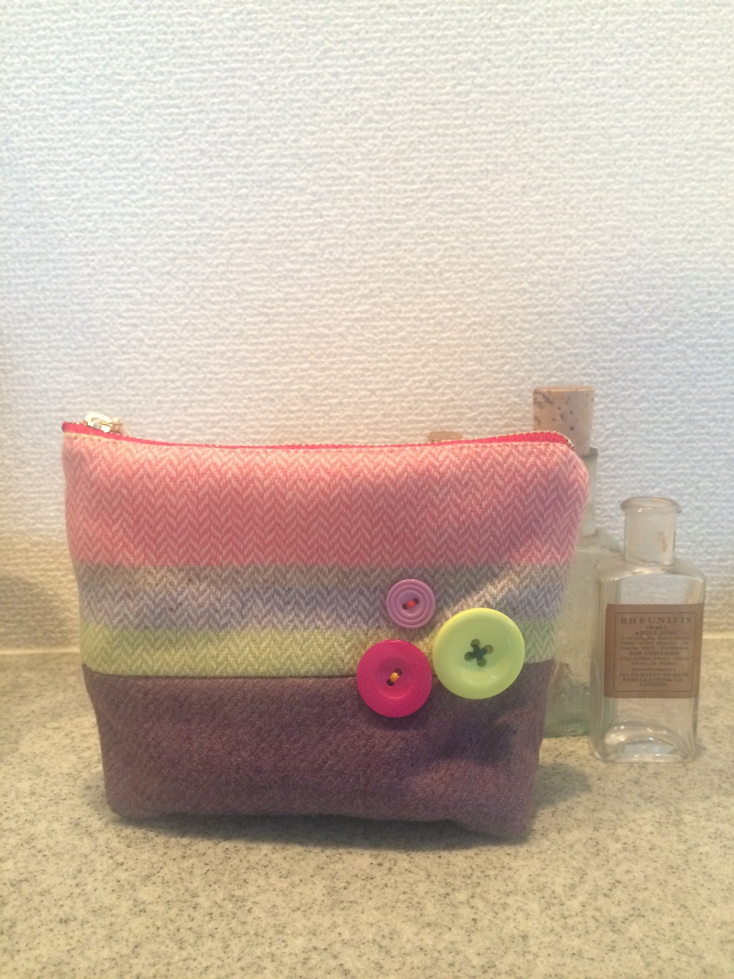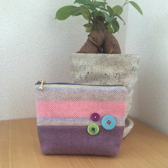 優しい色合いのポーチ、カラフルなボタンがポイントです♬